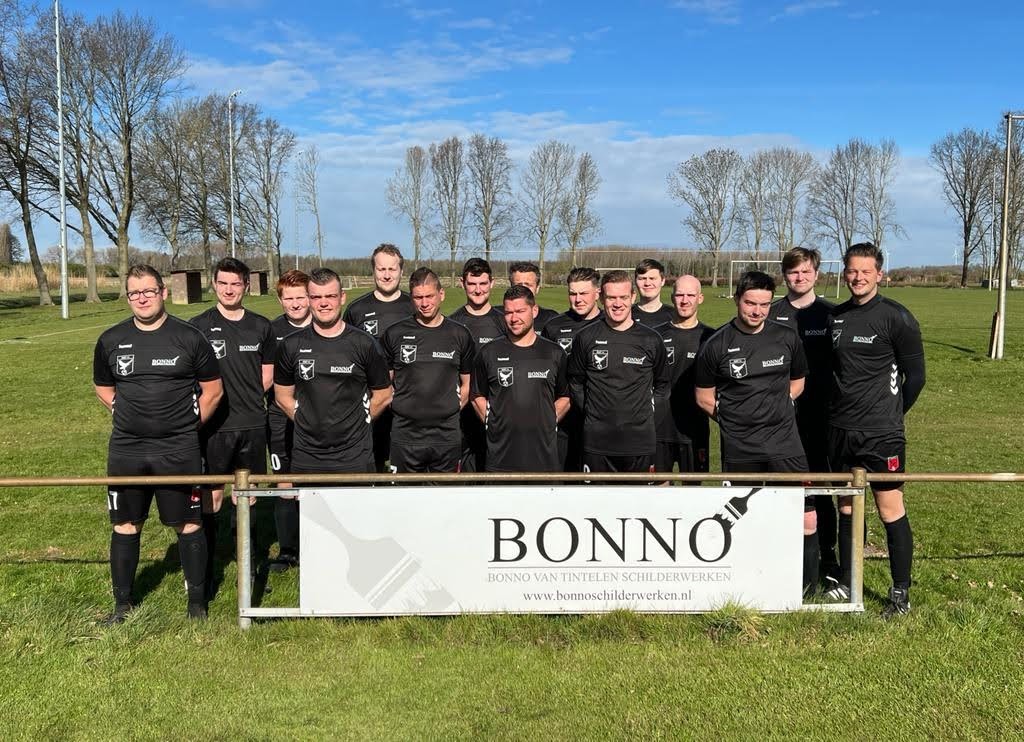 De nieuwe inloopshirts worden gesponsord door Bonno Schilderwerken. Wij willen Bonno van Tintelen via deze weg hartelijk bedanken voor deze gulle gift. De wedstrijd met 1-2 verloren.